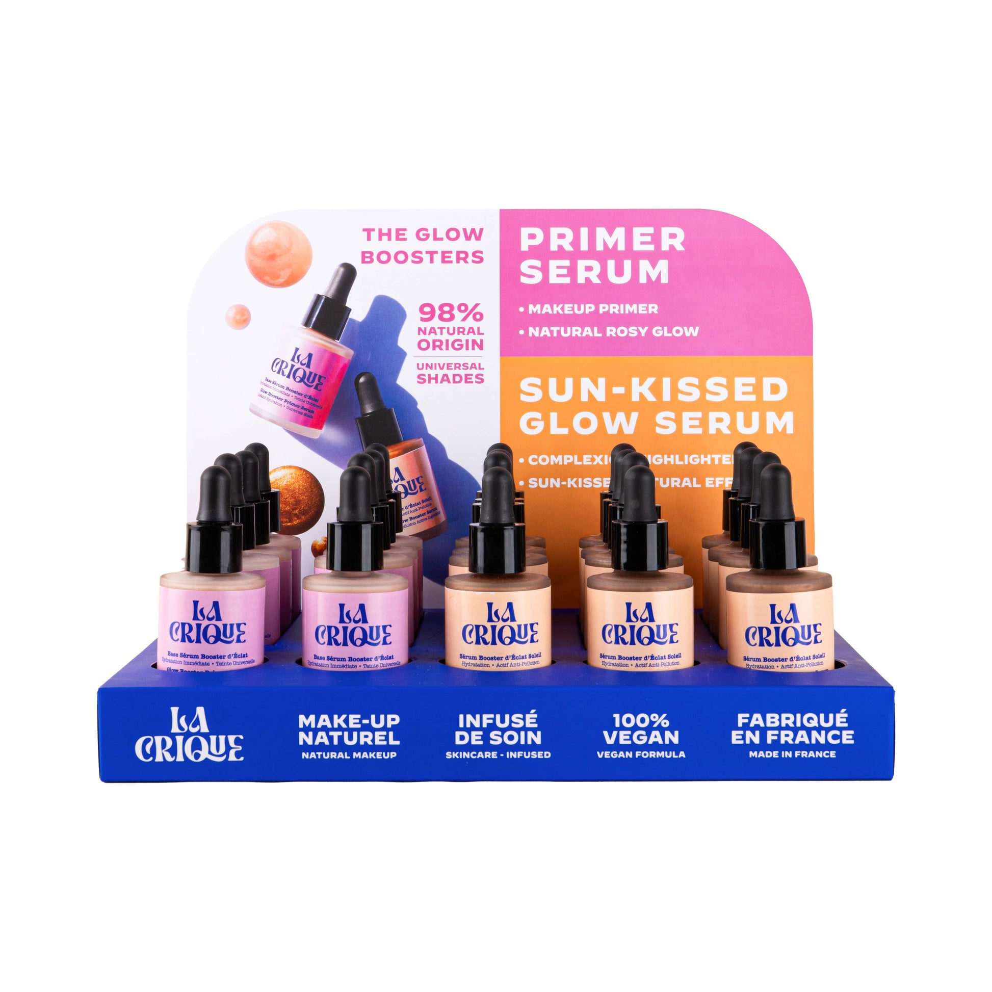La Crique's radiance primer serum foundation is a must-have in your beauty routine. Formulated with 99% of skincare active ingredients + hyaluronic acid, it offers a deep hydration and a blurring effect for an instant glow from inside out.